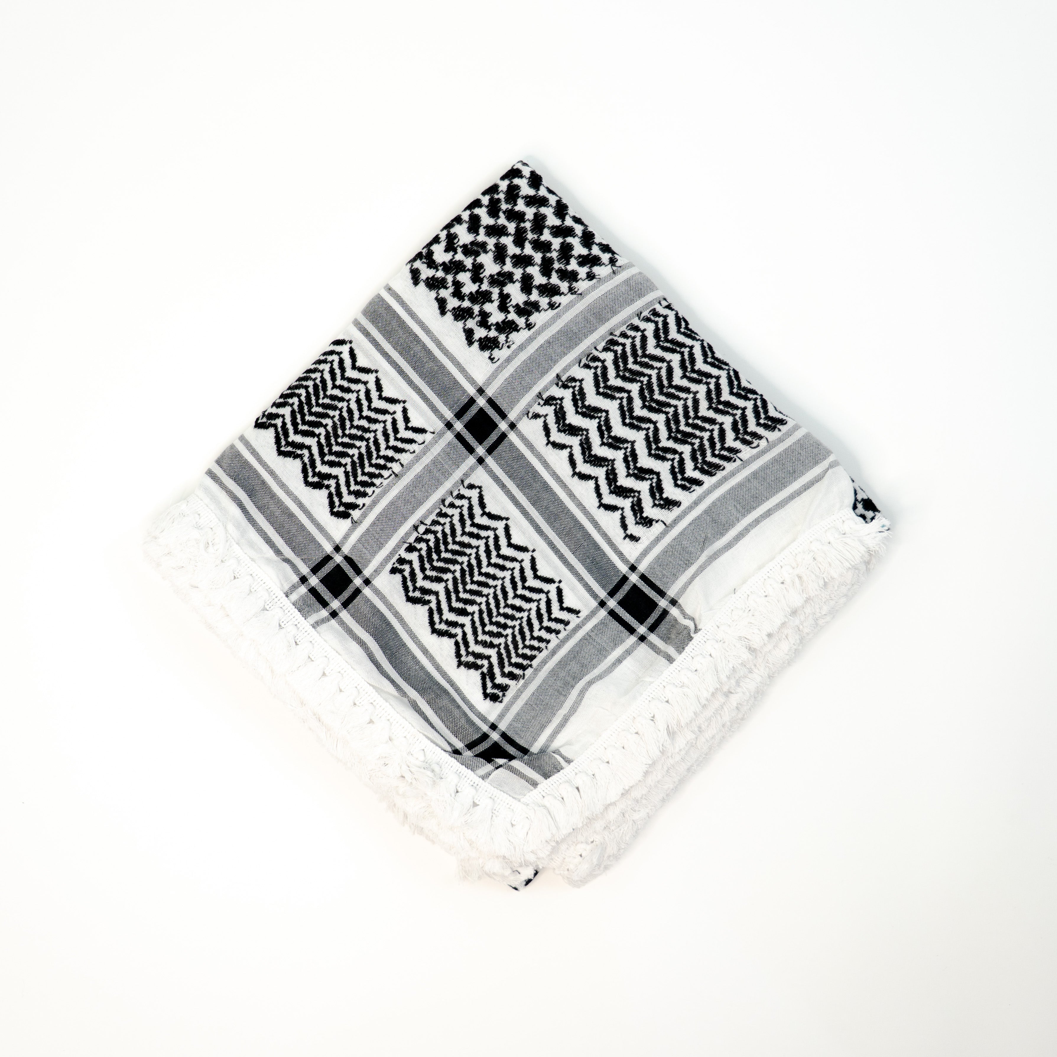 Palästinensisches Kulturerbe – die Kuffiyeh ist mehr als nur ein Tuch: Sie ist ein Symbol für Heimat und kulturelle Identität. Ursprünglich von palästinensischen Bauern getragen, schützt sie vor Sonne und Wind und erzählt mit jedem Muster eine Geschichte. Heute steht sie weltweit für Solidarität und Tradition.