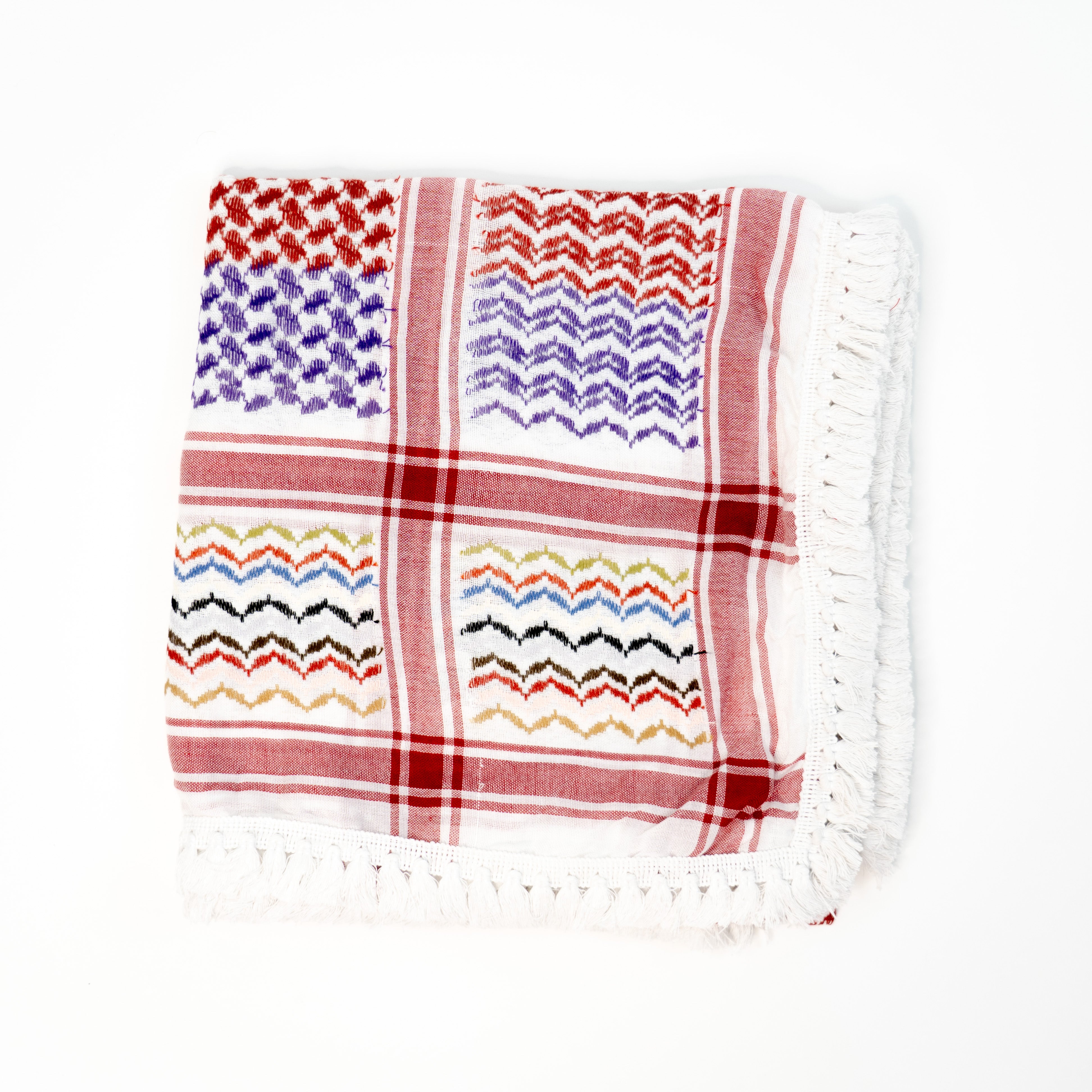 Palästinensisches Kulturerbe – die Kuffiyeh ist mehr als nur ein Tuch: Sie ist ein Symbol für Heimat und kulturelle Identität. Ursprünglich von palästinensischen Bauern getragen, schützt sie vor Sonne und Wind und erzählt mit jedem Muster eine Geschichte. Heute steht sie weltweit für Solidarität und Tradition.