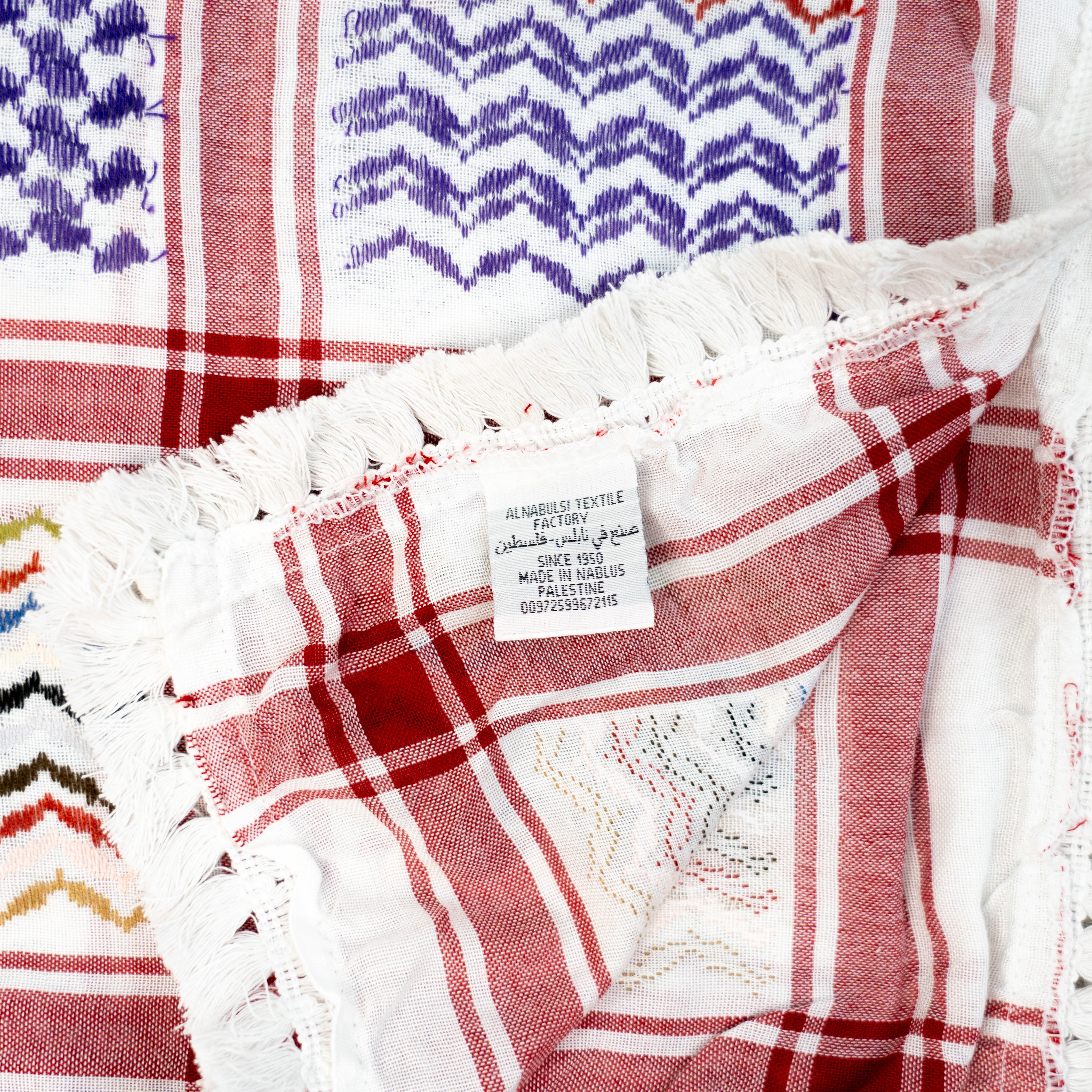 Gefertigt wird sie in einer traditionsreichen Fabrik in Nablus, die bereits 1950 gegründet wurde. Einst bekannt für ihre Kuffiyeh-Webkunst, musste die Produktion aufgrund von Besatzung und wirtschaftlicher Blockade über Jahrzehnte eingestellt werden. Stattdessen wurden Schuluniformen für palästinensische Kinder gewebt und genäht.